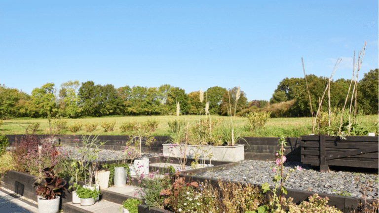 A striking contemporary home, set back from the road behind its own pond with an array of wildlife, and with parking for several cars.